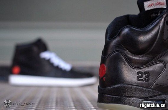 Air Jordan “Bin”系列以优质的用料和出色的质感让所有鞋迷痴迷。而眼前这双Air Jordan 1 “Bin 23″定制,用以黑色皮革打造鞋身搭配后跟的火漆Logo,让人极易想起那双 Air Jordan 5 “Bin 23″。