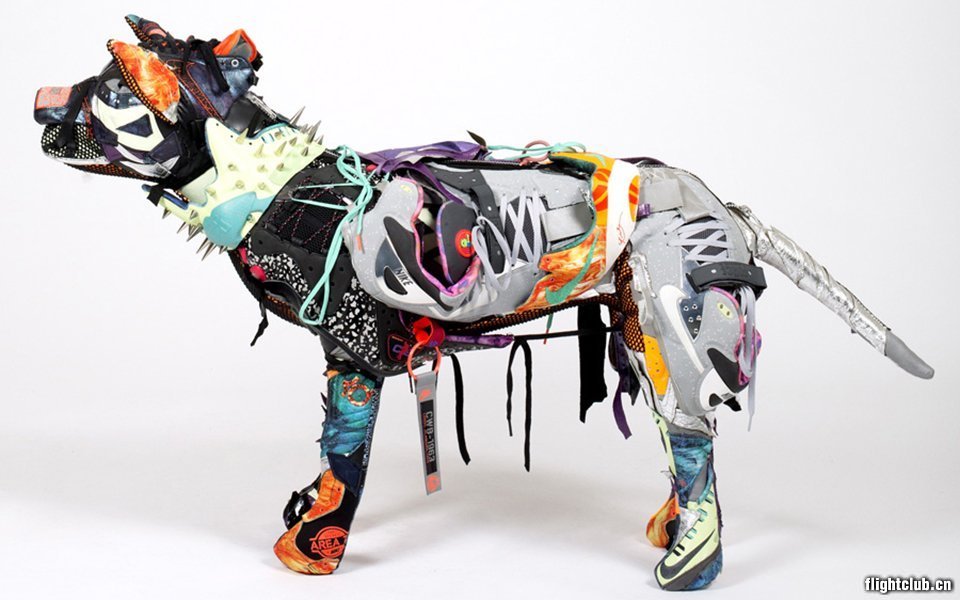 这么凶狠的大狗!它是从哪儿来的?偷偷告诉你,它来自72区!眼前这尊 Nike Area 72 Pitbull Dog 雕塑由Vinti Andrews打造,材料是今年全明星赛的Area 72 Pack鞋款,真心为其创意与热情所折服。