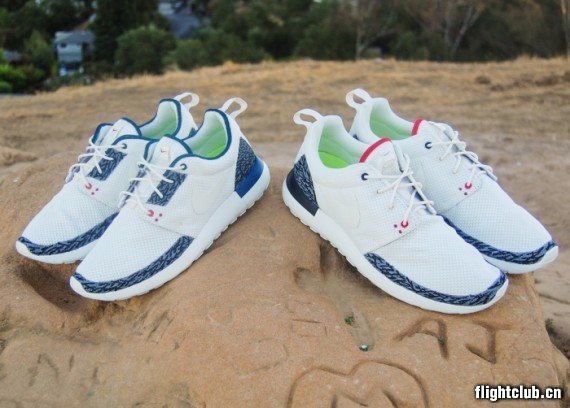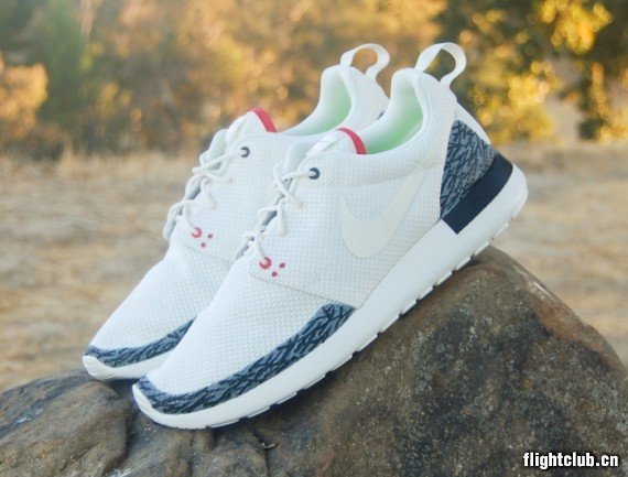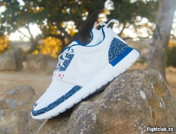 看看眼前这两双Nike Roshe Run “Air Jordan III”定制吧!爆裂纹涂装在白色鞋身之上,将经典元素与最新鞋款完美结合。你们是喜欢“White Cement”还是“True Blue”呢?
