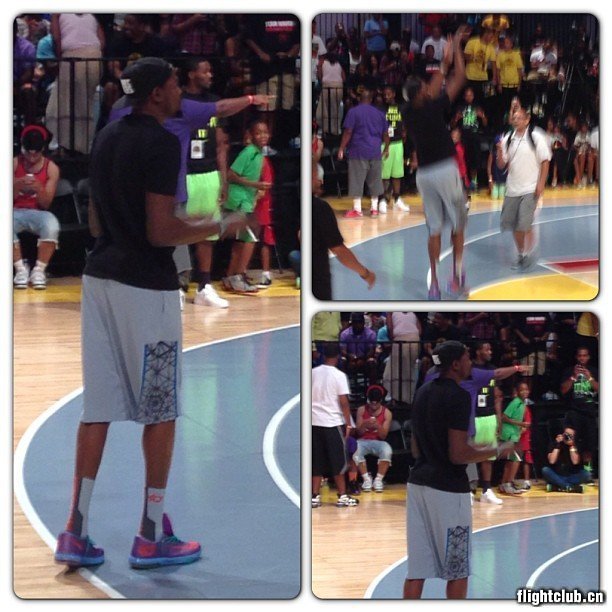 杜兰特昨日在纽约参加活动时,被球迷拍到穿上了一双全新配色的KD VI。从图中可以看到此鞋采用紫色鞋面搭配蓝色鞋带与中底、粉色KD Logo与Swoosh勾勒其中。有关此鞋的更多信息请关注我们的持续报道。