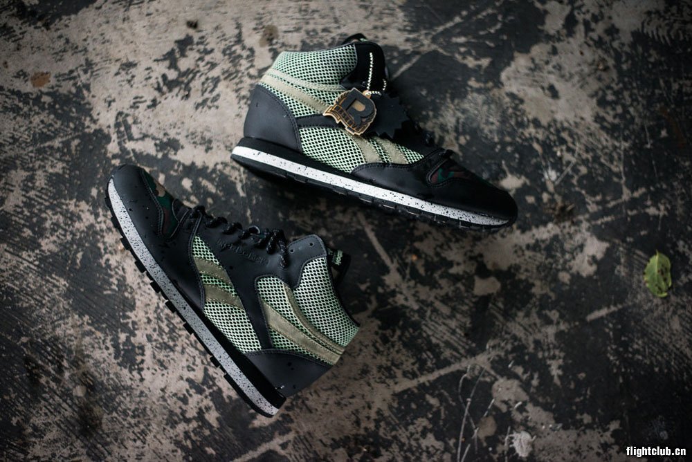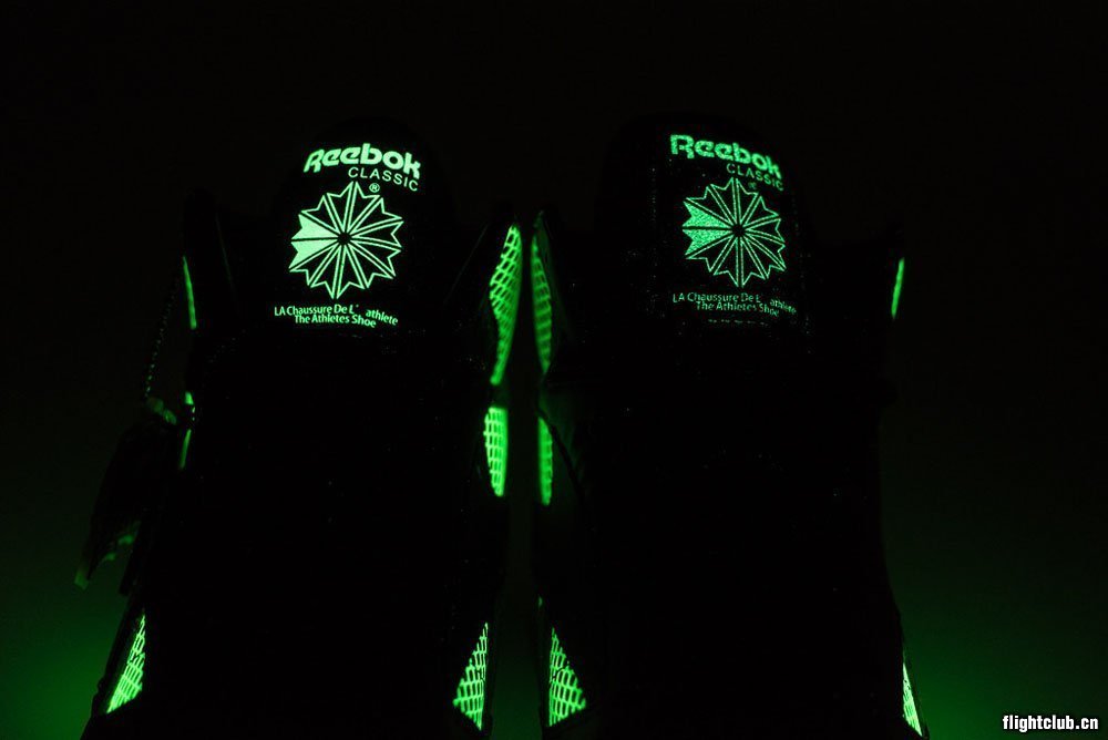 为庆祝自己的三十周年, Reebok特地与东京著名鞋店atmos展开合作共同打造出全新atmos x Reebok Classic Leather Mid “Glow in the Dark”。黑色鞋身上布满迷彩装饰,再搭配上泼墨中底极具个性。鞋面一部分与鞋舌又具有夜光效果,当夜色降临时变得格外醒目!