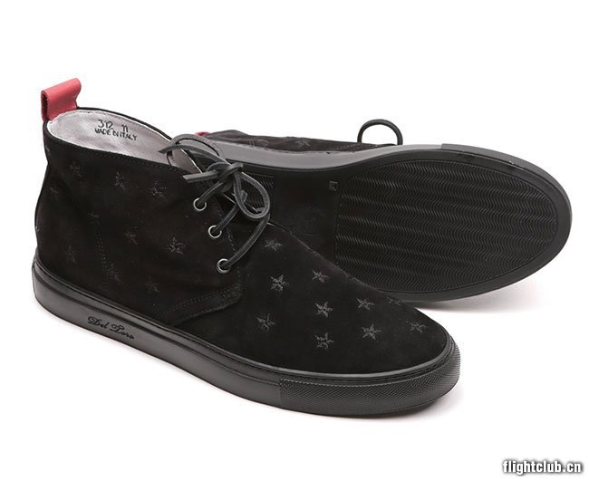 迈阿密人气鞋履品牌 Del Toro 总是能将传统绅士鞋履与当下潮流元素结合的相当融洽,此番 Del Toro 又发布了一款名为 “Black Stars & Suede” 的全新版本 Alto Chukka。顾名思义,这款 Alto Chukka 采用了黑色的麂皮材质打造鞋身主体,质感卓越,并以时下热门的五芒星元素覆盖鞋身,配以后跟红色的皮标以及皮质鞋带作为点缀,低调的华丽质感显露无余。据悉,这款 Black Stars & Suede Alto Chukka 已在 Del Toro 官方网站上架,售价为335美元。