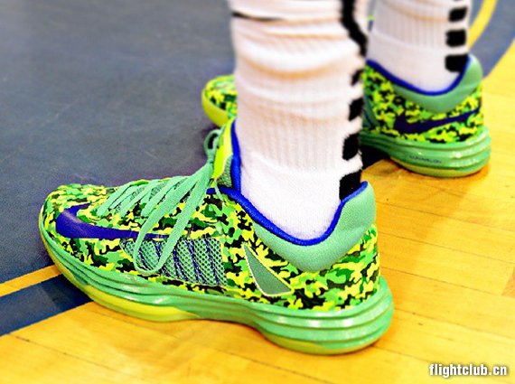 Kyrie Irving在忠实着用2011和2012版本之后,顺理成章成为如今Hyperdunk 2013的亲穿代言人,不过近日他再次穿上了曾经曝光过的“寒风迷彩”配色Hyperdunk 2012 Low PE。