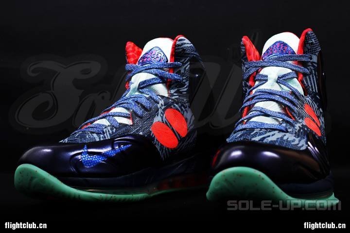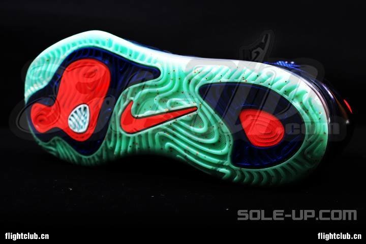 眼前这双Nike HyperPosite NYC “Glow Dark” 配色将于2014年发售,紫色Foamposite鞋身搭配橙色内衬,蓝灰色细节点缀鞋面之上,再加上绿色夜光大底让鞋款整体极具视觉冲击。