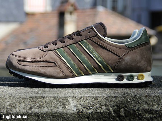 为纪念1984年洛杉矶奥运会的成功举办,adidas Originals 推出了这款 LA Trainer 复古慢跑鞋。此番一款全新配色的 adidas Originals LA Trainer 曝光于网络,棕色的麂皮、尼龙材质组合打造了这款鞋的鞋身,而三杠标志以及后跟则以深绿色的皮革材质制成,并配以金色的镶边点缀。据悉这款配色将在不久于各大专卖店上架发售。