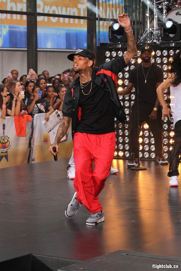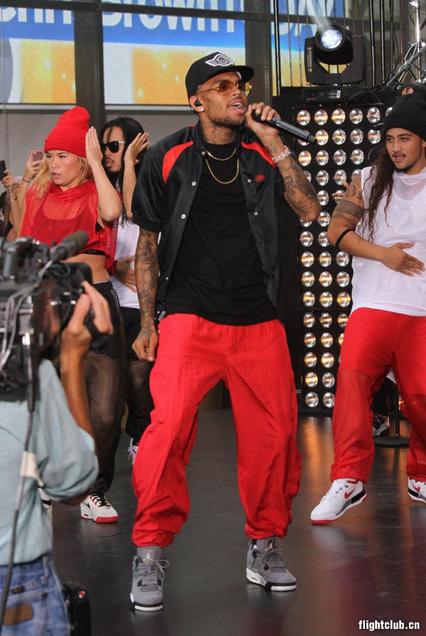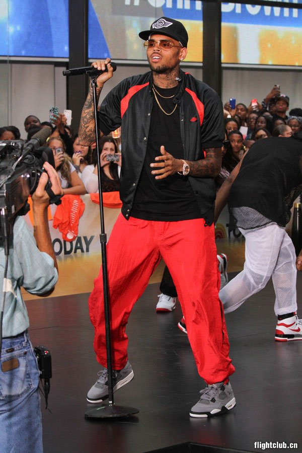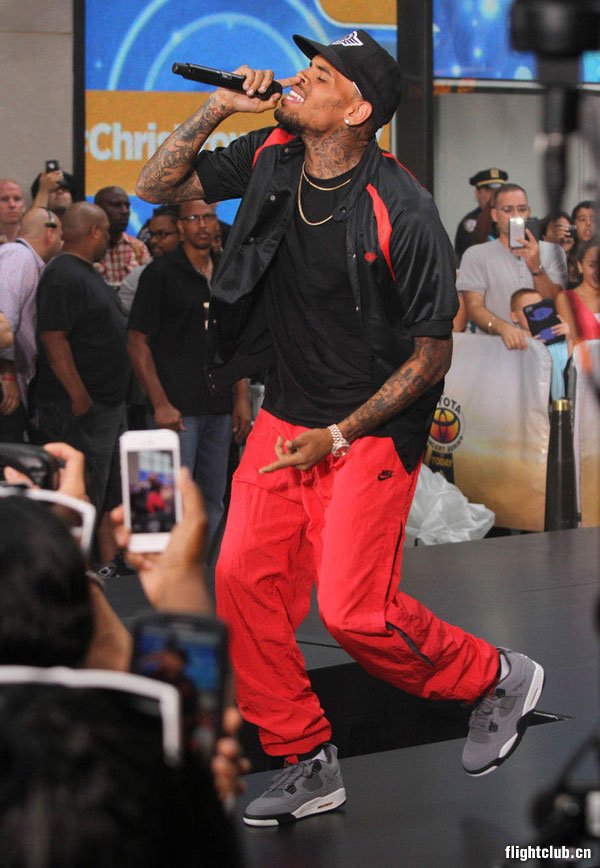 众所周知,小天王克里斯 布朗酷爱篮球以及收集球鞋,他的球鞋搭配也一直是广大 Sneakerhead 追捧的对象。近日克里斯 布朗在一场露天演出中上脚了一款 Air Jordan 4 "Cool Grey" 配色,各位看官觉得如何?
