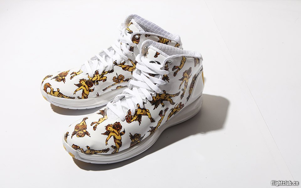 adidas Originals与Jeremy Scott的合作在2013年秋冬又有了新的惊喜,此次以德里克·罗斯的3.5代战靴为蓝本进行全新设计。Jeremy Scott在球鞋的设计保留了原有的外形轮廓,而在印花部分则将手持弓箭和美元的丘比特加身其上,作为点缀的金色线条则仅仅出现在鞋跟和大底部分。没有多余的颜色和繁杂的理念,这双鞋在简洁中凸显了一份POP设计感。 新一代战靴延续采用了透气和坚韧俱佳的SPRINTWEB 技术,辐射状渐变镂空设计为球鞋提供了必要的支撑与完美的透气性。经典的SPRINTFRAME结构搭配,在减重的同时,也为穿着者铸就了稳定的运动表现。用PU材质新开发的鞋垫承担着每一步的舒适感受与持久缓震。一次铸模而成的鞋领,则为穿着者提供了柔软、坚实的脚踝保护,更进一步在每一处细节都达到尽善尽美。 D Rose 3.5 x Jeremy Scott 鞋款既拥有丰富的故事性又具备科技性能,对于追逐潮流文化并且热爱篮球的朋友来说,是不可错过的一双鞋款。