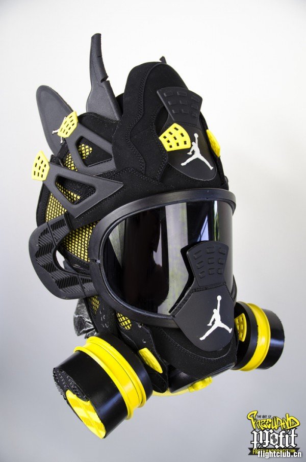 球鞋面具制作专家 Freehand Profit 又发布了新的作品,这次采用了黑黄配色的球鞋,打造了向 Wu-Tang Clan 致敬的球鞋面具。 使用的鞋款有 Nike Dunk High、Jordan Spiz’ike iD 和 Air Jordan 4 “Thunder”。