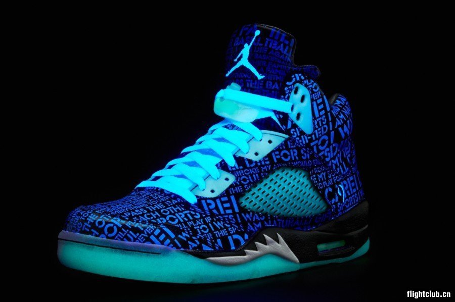 这双慈善鞋款将于 9 月 14 日在美国地区发售。这双由小病人 Isaac Arzate 设计的 AIR JORDAN 5,其特别之处在于鞋身布满了文字,并且整个鞋身都有夜光效果!