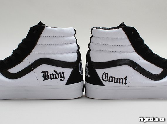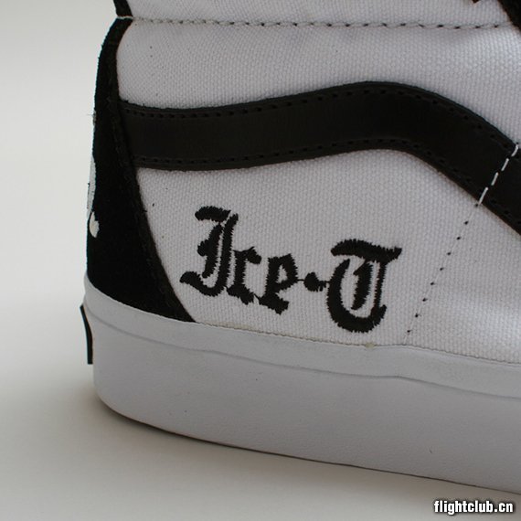 Ice-Tx Vans “Rhyme Syndicate” Pack 正式曝光,套装内包含一双黑白的 Sk8-Hi鞋款,一款改装过的Chukka Decons,以及一些附属产品。黑白Sk8-Hi鞋款在鞋身上加入了个性十足的字母元素,并将“Ice-T”绣在侧面。而黑色麂皮打造的Chukka Decons,则显得低调不少