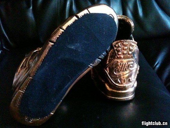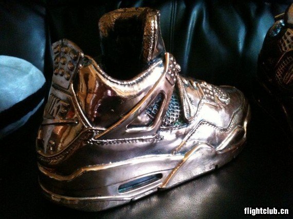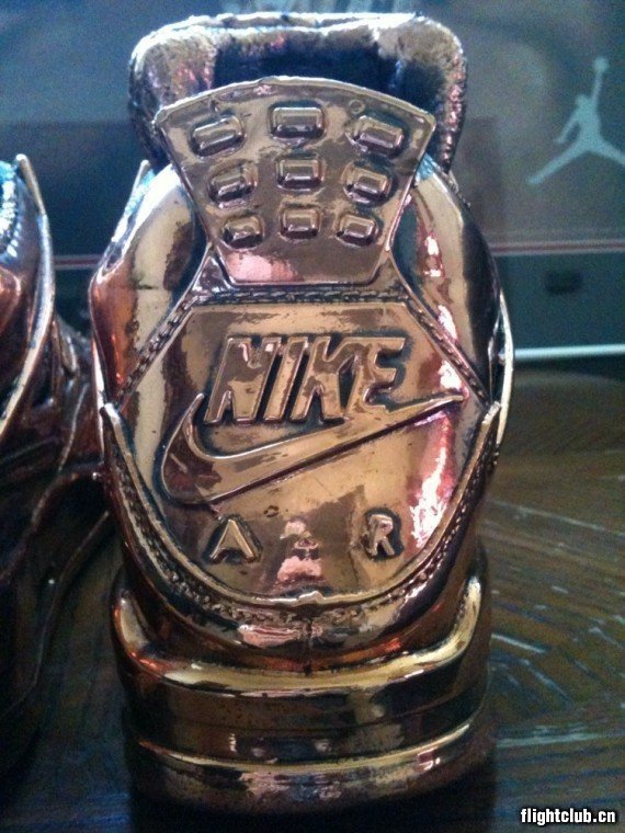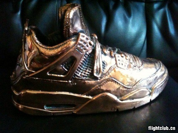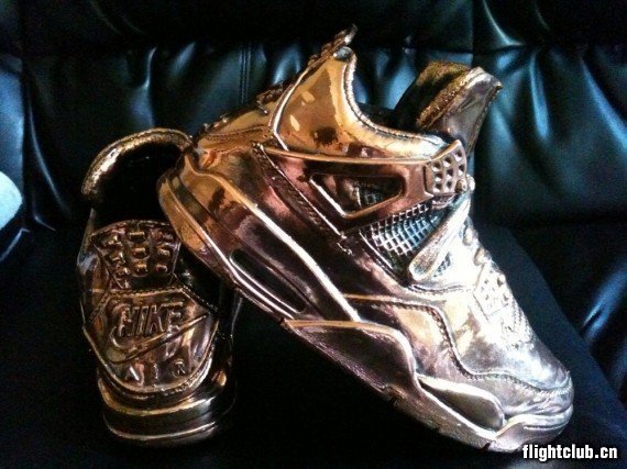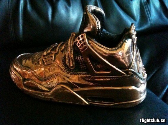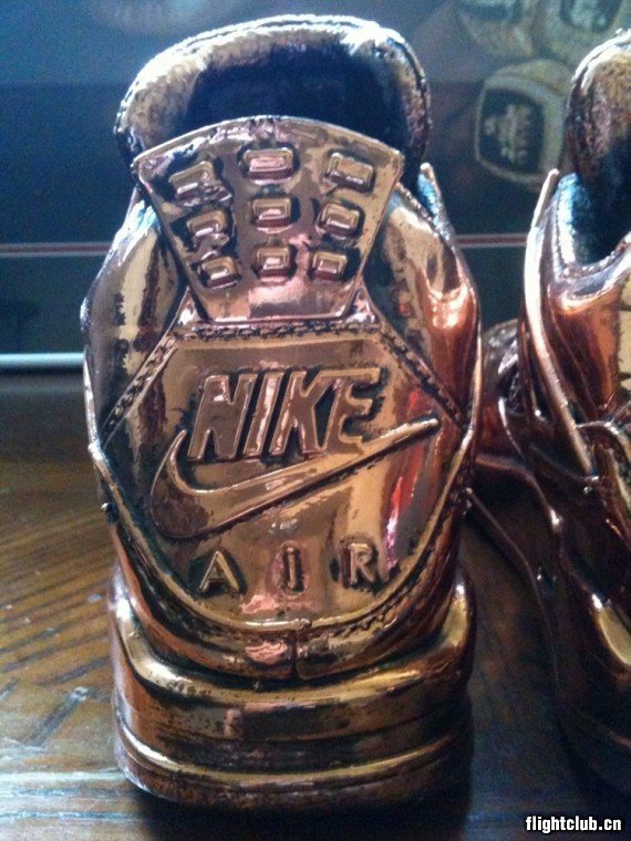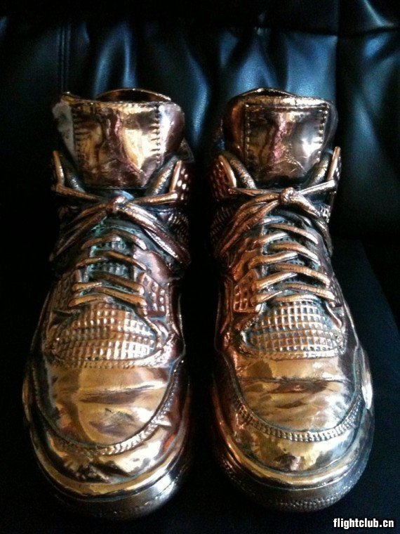 在一双元年Air Jordan球鞋氧化变成粉末之前,你会做什么?眼前这双Air Jordan IV教你了一个方法来延长球鞋寿命,做成青铜模型。当然了,这种做法有好有坏,好处是它容易清理,而且不用担心开裂或是任何老化问题,不过想要再穿上脚基本不现实了。这个特别的青铜模型正在eBay出售中。