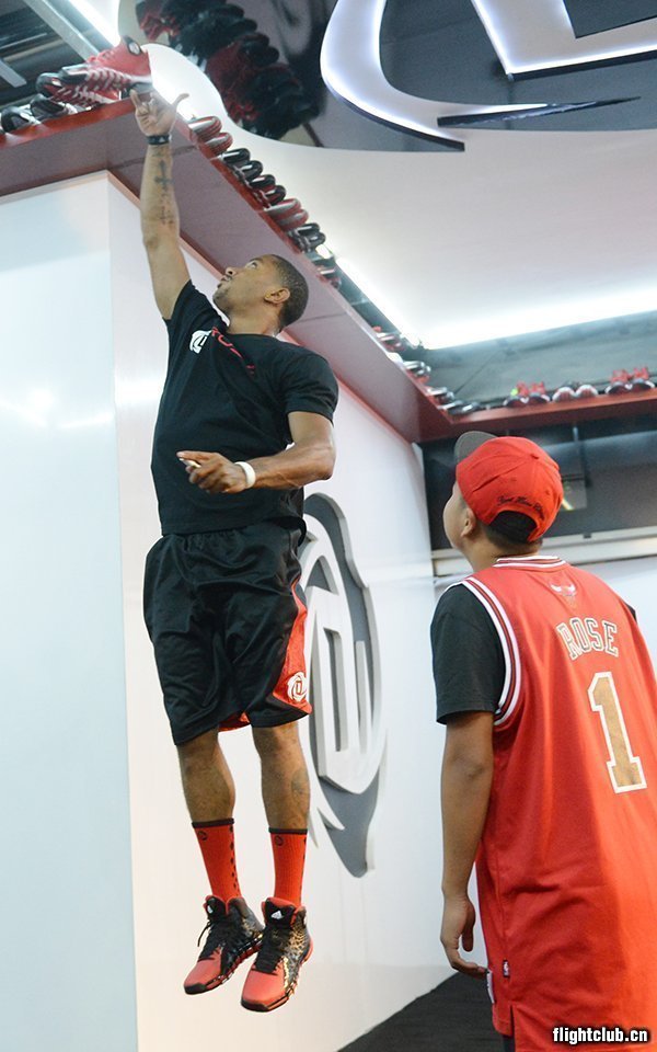 北京时间9月8日下午5点,阿迪达斯旗下篮球巨星德里克·罗斯现身北京三里屯阿迪达斯品牌中心,开启2013罗斯中国行。现场罗斯邀请北京球迷与他一起“凌跃升空”,球迷们在获得罗斯签名球鞋的同时也体会到了篮球中弹跳的乐趣和罗斯谦逊亲和的性格魅力。