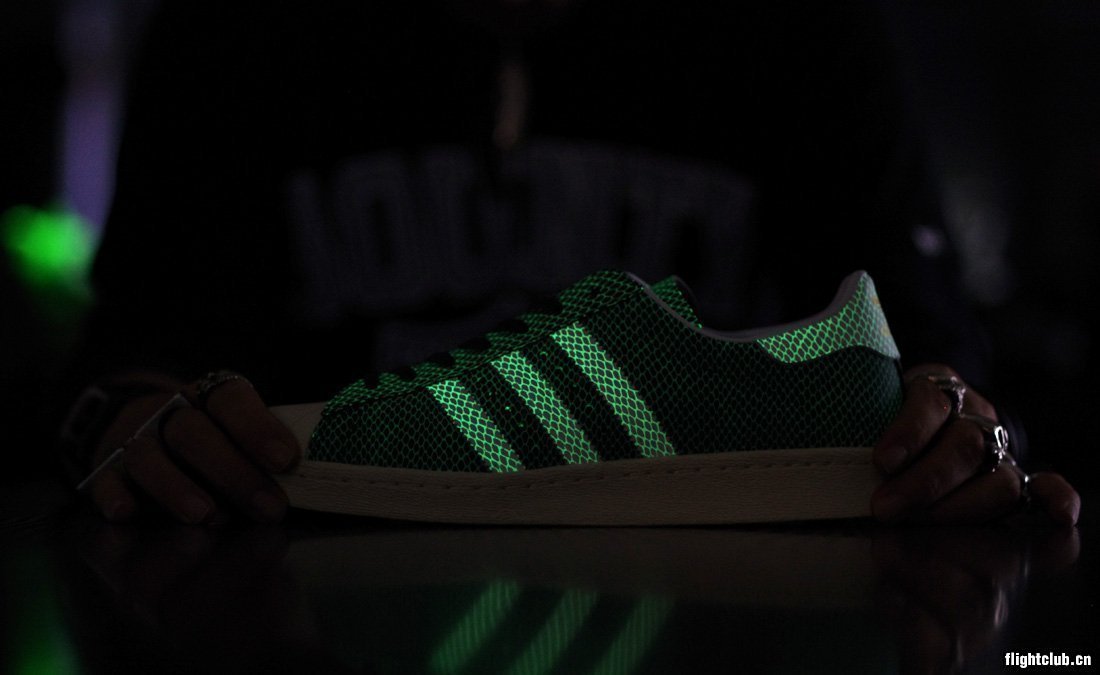 于今年七月初次曝光的第六代夜光蛇纹atmos x adidas Originals Superstar 80s即将正式发售,海军蓝色皮革附有夜光效果的蛇纹点缀,atmos也再次联手Bounty Hunter打造合作t恤。9月21日登陆atmos店铺。