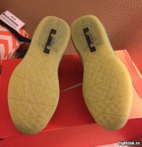 属于DJ Clark Kent 112系列的鞋款数量远大过我们预想的,就如眼前这双非市售的LeBron 9 Low样品。黑色鞋身搭配荧光色细节,内衬还辅以灰色爆裂纹点缀,标准的“112”系列配置,鞋垫还印有电话亭logo,非常特别。此款现正在eBay出售中。