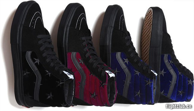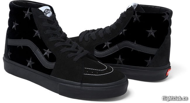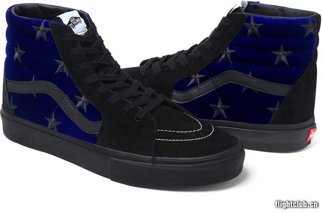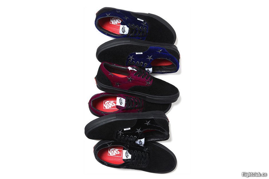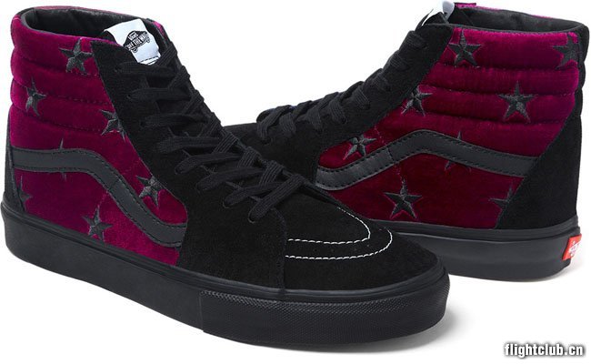 Supreme x Vans 秋冬系列正式发布!系列内包含Sk8-Hi与Era两双经典鞋款。鞋身均采用天鹅绒与皮质拼接而成,并在鞋面上搭乘五芒星图案细节。此系列将于9月12日在Supreme欧美店铺发售,日本店铺则要等到9月14日。