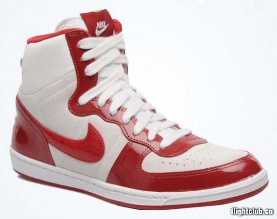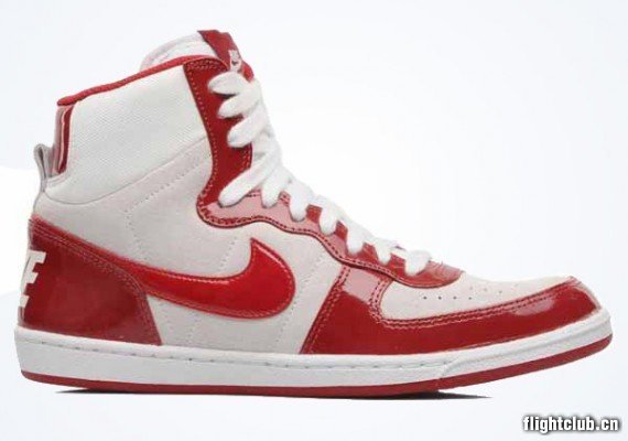 Nike为女生专门打造轻盈版Terminator,Nike WMNS Terminator Lite High。鞋身相较于原版更为纤细瘦长,因此也更适合女生平日穿着搭配。此款选用白色网面织物、米白色麂皮以及红色漆皮搭配制作,货号599435-102,亚洲地区已率先发售。