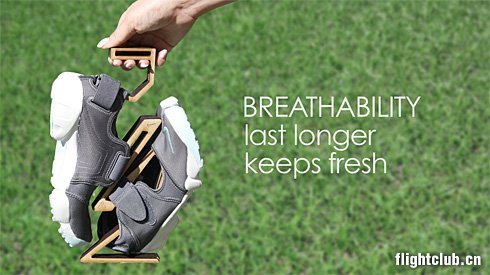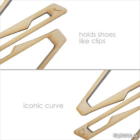 SNEAKER 的收藏只能平躺在鞋柜睡觉?未必。来自设计师 Young Joo Tak 的创意,设计了这样一个名叫 Omni Clip 的鞋架。简单的结构,却能将一双鞋富有艺术感地支起来,形成一个不对称的角度,我们的爱鞋可以这样支起来通风、保持鞋子干燥或者洗了鞋要晾晒都很方便。对于大品牌来说,可以应用到鞋盒子的支撑结构,避免运输过程中变形损毁。不知道NIKE会否采纳她的设计,不过设计师已经先发制人在样品上刻上了大勾标志以示诚意。