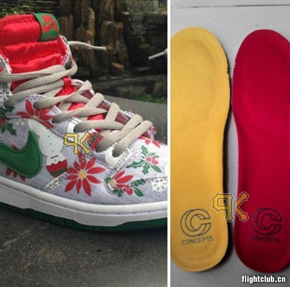 Concepts与Nike合作密切,近日网上再曝光双方合作打造的全新SB Dunk High。灵感源自圣诞节时或许会从亲戚那里收到的难看的毛衣礼物,眼前这双是报废样品,鞋身图案存在版权问题,因此最终市售版或与样品有所不同。