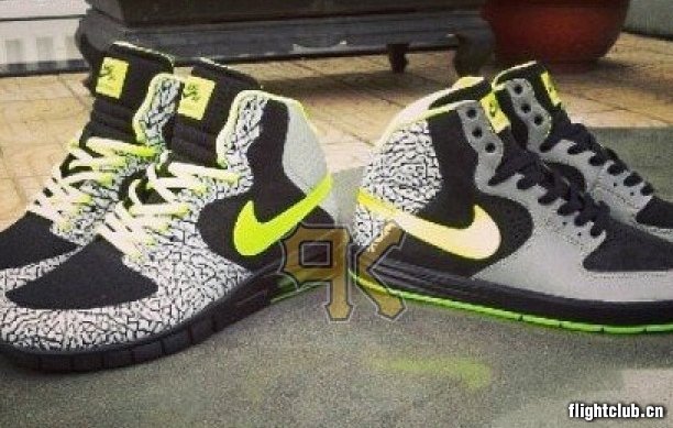 之前已经曝光DJ Clark Kent“112”系列的Nike SB Dunk Low,如今网络曝光再添两位新成员,这也是此系列首次加入滑板界签名系列鞋款,Nike P-Rod 7 High以及Nike P-Rod 7 High Free Max,依旧是水泥灰色爆裂纹、3M反光材质、荧光色以及黑色的搭配风格。