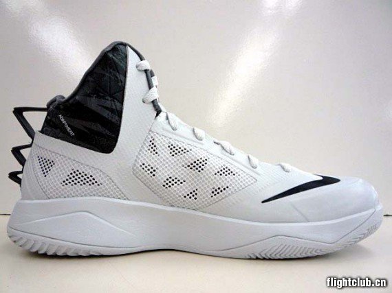 Nike Hyperfuse系列是前些年高校球队选择着用最多的鞋款,而现在看到的这双就是Nike Hyperfuse家族的最新鞋款Nike Hyperfuse 2013。此款配色以白色Hyperfuse鞋身辅以黑色细节,后跟设计颇具特色,货号615896-004。