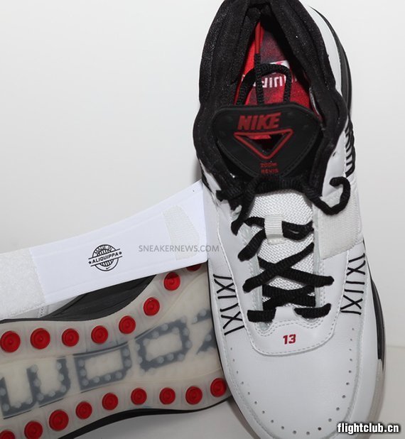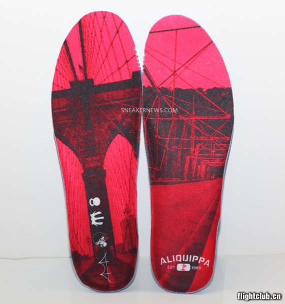 眼前这款Nike Zoom Revis样品是对Revis的家乡“Aliquippa”的致敬之作,鞋款也再次呈现了他从家乡走向纽约的成长历程。绑带内侧印有“Aliquippa” logo,鞋垫则分别取景阿勒奎帕和纽约。