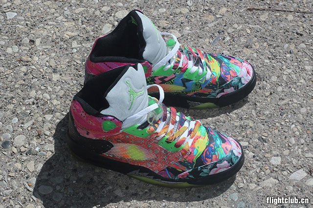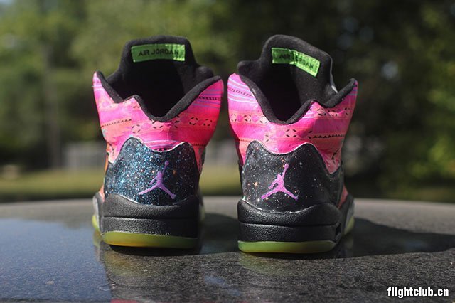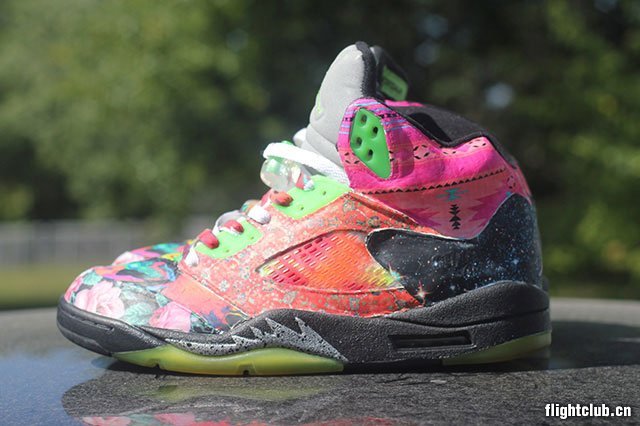 近日 Jordan Brand 以经典电视喜剧《新鲜王子妙事多》为灵感打造了多款 “Fresh Prince” 配色鞋履,花哨的设计风格也激发了球鞋定制爱好者的无限创意。此番,球鞋定制师 Rocket Boy Nift 便以此为灵感并加以改造,打造出了这款极为花哨的 Air Jordan 5 “What The Fresh Prince” 个人定制版本。鞋身上充满了各种的花卉、民族图案等元素,后跟上还注入了宛若星辰般的特殊设计。