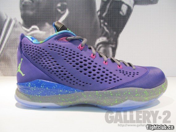 Jordan Brand的Bel-Air配色球鞋还未上架便已成一个系列,现在此系列又加入新成员,Jordan CP3.7。紫色作为鞋身主色调,配上附有绿色泼墨的皇家蓝/灰色中底以及水晶大底,粉色动态飞线点缀,花色内衬更是不会少。10月5日正式发售。