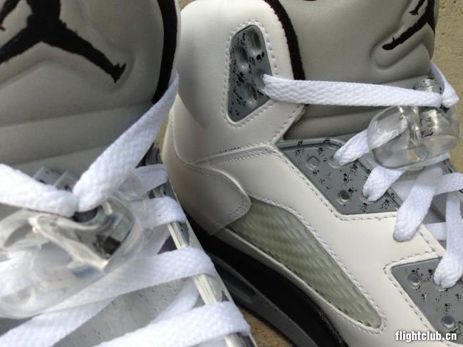 近日球鞋定制团队 Astrotorf Custom 将 Air Jordan 4 身上的 “Cement”(白石灰)配色嫁接到了今年大热的 Air Jordan 5 之上。简单干净的白色鞋面配以灰色的鞋舌、鞋带孔以及中底,并将 Air Jordan 4 中底上经典的泼墨设计移植到了这款定制作品的中底之上。各位觉得这款低调的 Air Jordan 5 定制作品如何?