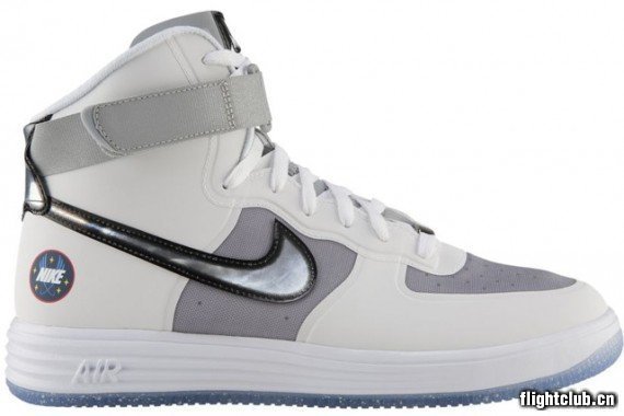 一款全新Lunar Force 1 Hi曝光,鞋身白色搭配灰色,swoosh有如银河版的渐变效果,后跟再现源自NASA标志的特别logo,难道“全明星/72区”主题还将延续?此款货号632359-100,即将发售。