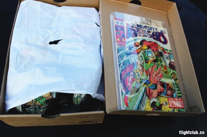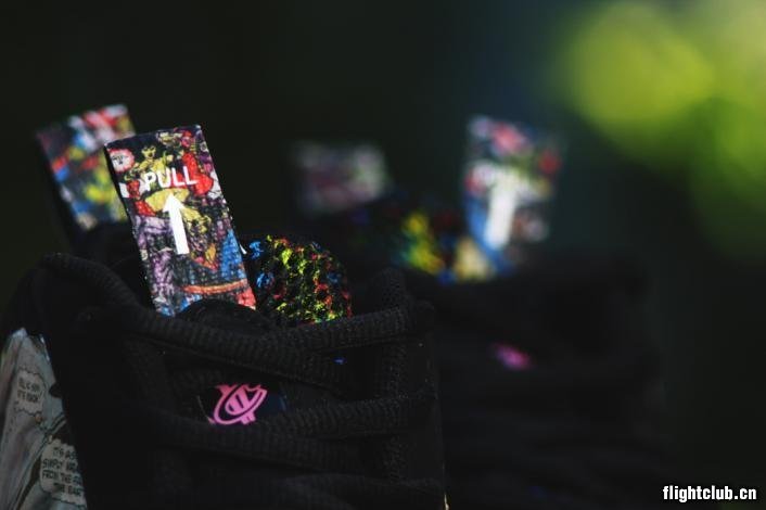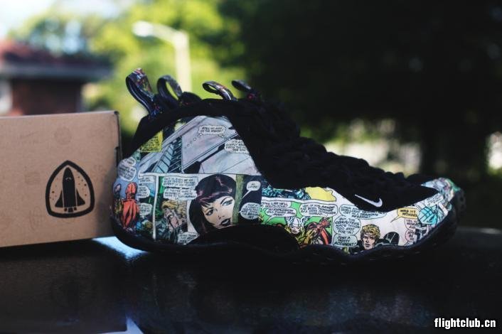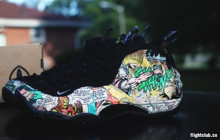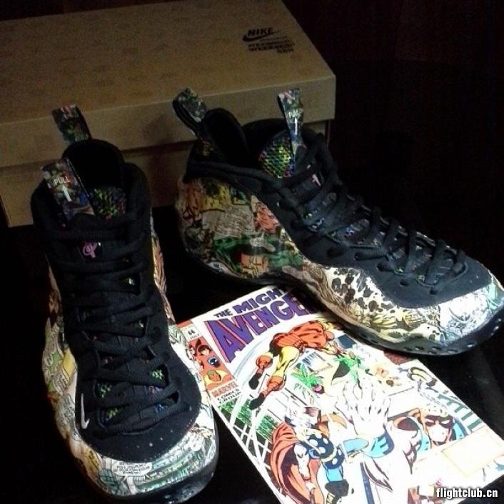 超级英雄已经不止一次的出现在定制鞋款中,不过由Rocket Boy Nift打造的这款Air Foamposite One则将超级英雄的主题更加美式漫画的表现在了球鞋上。Foam鞋身以及内靴外露部分均绘有复仇者联盟的漫画,其精细程度犹如将漫画贴于鞋面一般,鞋盒中同时附上原版漫画,颇具玩味。