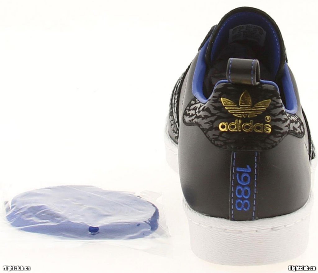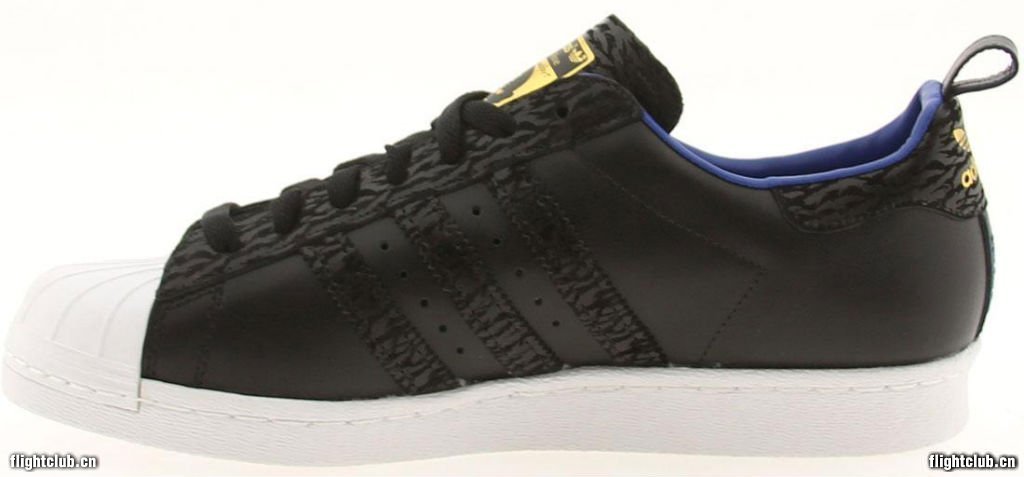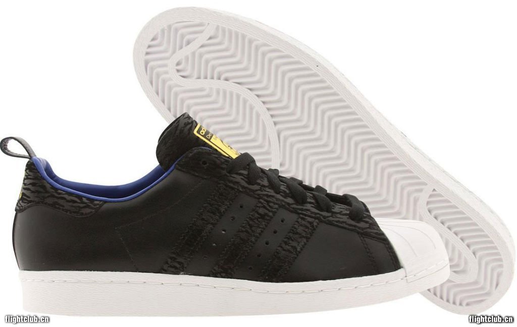 除了全新签名鞋款发布之外,adidas Originals也为Derrick Rose打造了一款全新的专属Superstar 80s。黑色皮质鞋身辅以虎纹点缀,金色以及蓝色的细节或许源于Simeon职业学院,鞋舌印有其头像,后跟则附着其出生年份1988。此款D Rose别注现已发售。