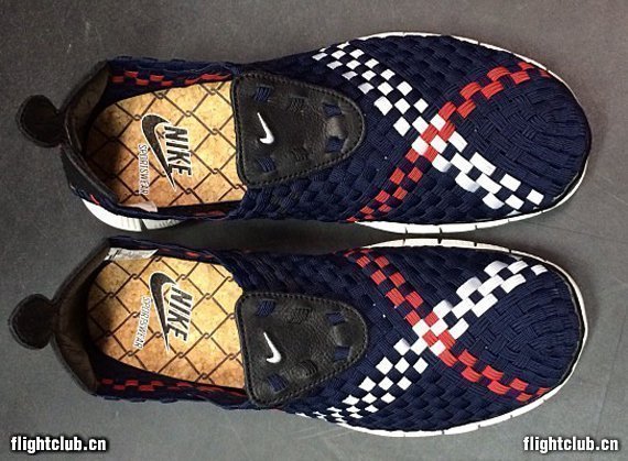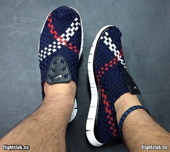 日本店铺mita sneakers与Nike合作打造的全新Free Woven 4.0再次曝光实物照,同时曝出的还有实物上脚效果。海军蓝色编织鞋身点缀白色以及红色“X”字形织物,鞋垫则呈现犹如软木塞一般的效果。