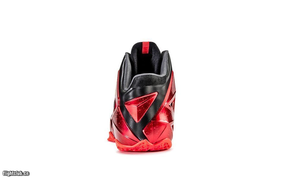 LEBRON 11客场配色将Nike Hyperposite技术和起到支撑作用的Dynamic Flywire (动态飞线技术)强调到极致。特别的渐变红色代表了热量的聚集,一如勒布朗准备穿着它迈向下一个起点,而喷墨效果Nike Hyperposite带来了火花四射的效果。在新赛季即将开始之际, LEBRON 11客场配色发出了又一次创造历史的宣言。