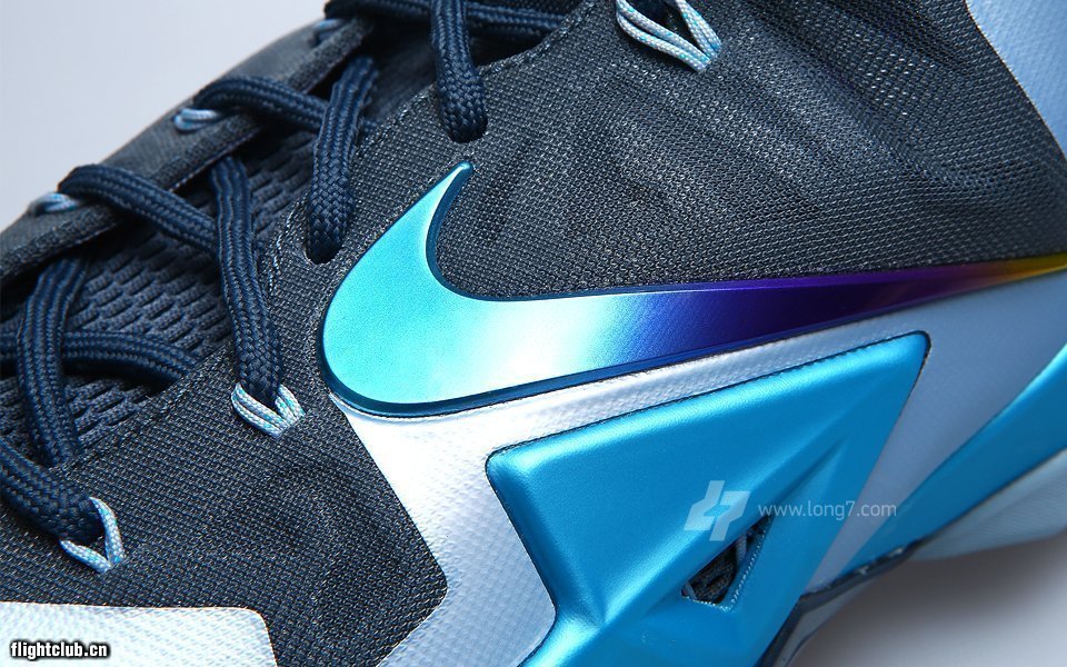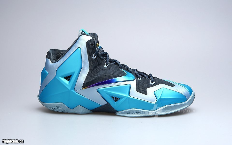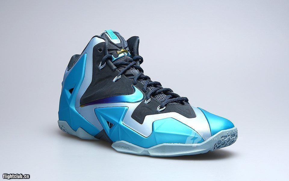 Nike LeBron XI “Gamma Blue” 蓝色Hyperposite搭配黑色Hyperfuse并辅以银色点缀,鞋面Swoosh采用渐变色设计。此鞋将于11月发售,货号:616175-401。售价:1599RMB。