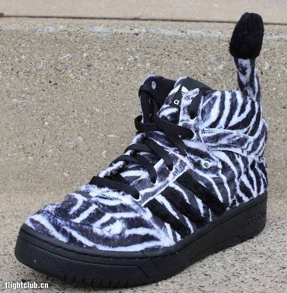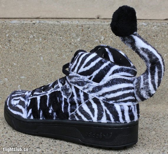 鬼才设计师 Jeremy Scott 似乎特别钟情于动物纹元素,每季的 Jeremy Scott x adidas Originals 系列新品中,我们总是能看到那么几双动物纹元素的鞋款。此番,又一款 Jeremy Scott x adidas Originals “Zebra” 在网络上曝光,鞋款通体以斑马纹元素覆盖,配以全黑色的大底,野性十足。目前还没有这款新品在国内的确切发售信息。