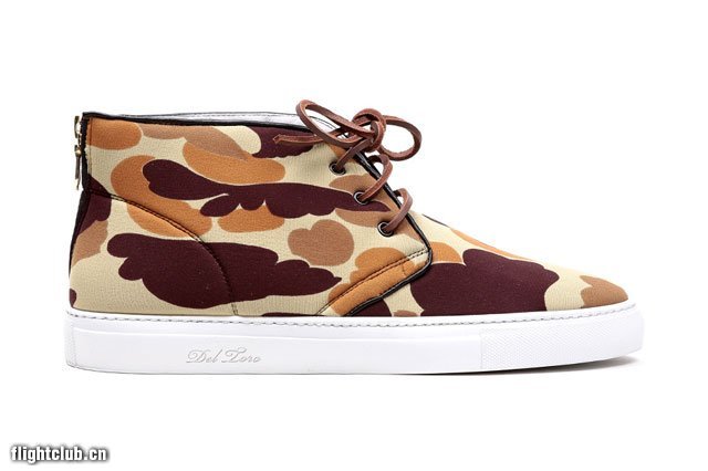 要数当今潮流界最炙手可热的元素,那非“迷彩”莫属了。本月早些时候,迈阿密人气鞋履品牌 Del Toro 便邀请纽约当红鞋履设计师 Ronnie Fieg ,打造了一双迷彩式样的 Alto Chukka 鞋款。此番,Del Toro 再度“故技重施”,推出了一款沙漠迷彩式样的 Alto Chukka,再配以皮质鞋带以及后跟的金属拉链,潮流味道十足。据悉,这款鞋已在 Del Toro 官网发售。
