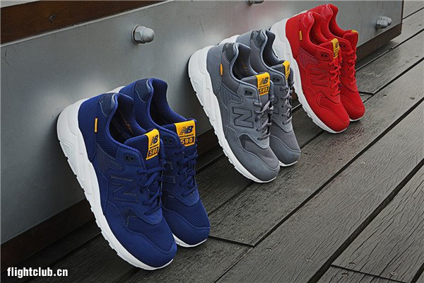 除经典原色外2013 冬季款 MRT580 还推出了三款全新配色,以牛皮皮面/网眼鞋面为特色,共有蓝灰色、靛蓝色和红色三个颜色,鞋垫和鞋舌均以橘黄色作点缀。售价为:RMB 859。