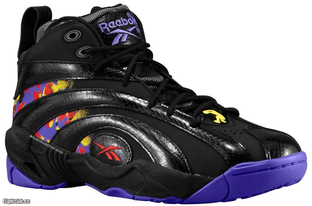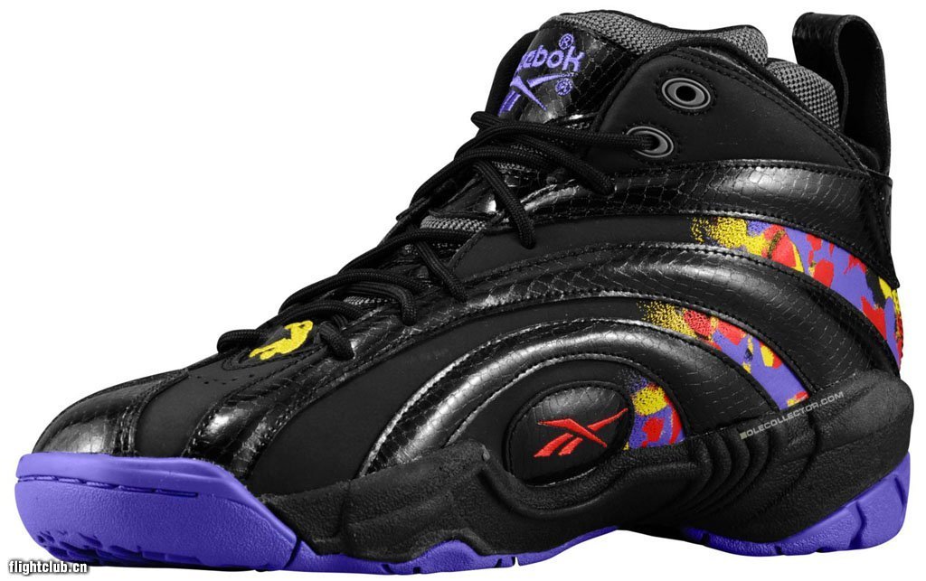 向Shaquille O'Neal赢得三座总冠军奖杯的城市致以敬意的“逃离洛杉矶”配色Reebok Shaqnosis即将发售,黑色牛巴革鞋身搭配蛇纹点缀,配上紫色细节以及灰色内衬,后跟附有类似AJ8的涂鸦装饰。货号V61028,10月18日正式发售。