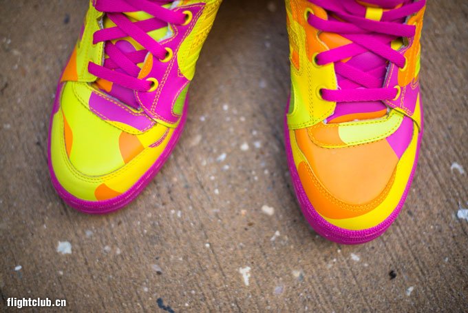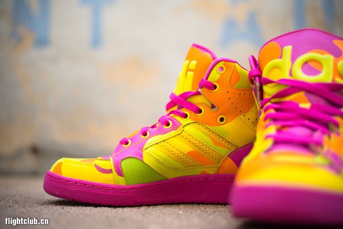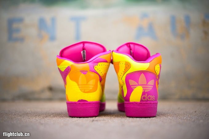 鬼才设计师 Jeremy Scott 与 adidas Originals 近日动作不断,此前双方联手美国著名歌手 A$AP Rocky 推出了一款 JS Wings 2.0 Black Flag,引起了多方关注。此番要为大家带来的是 Jeremy Scott x adidas Originals 系列的本季新品,这款全新的 Instinct Hi “Neon Camo”以时下大热的迷彩热潮为主题,注入 Jeremy Scott 本人的设计巧思,以粉色、黄色以及橘色三种亮色呈现,因而取名为 “Neon Camo”,鞋款整体依旧延续了 Jeremy Scott 荒诞而又极具设计玩味的风格!