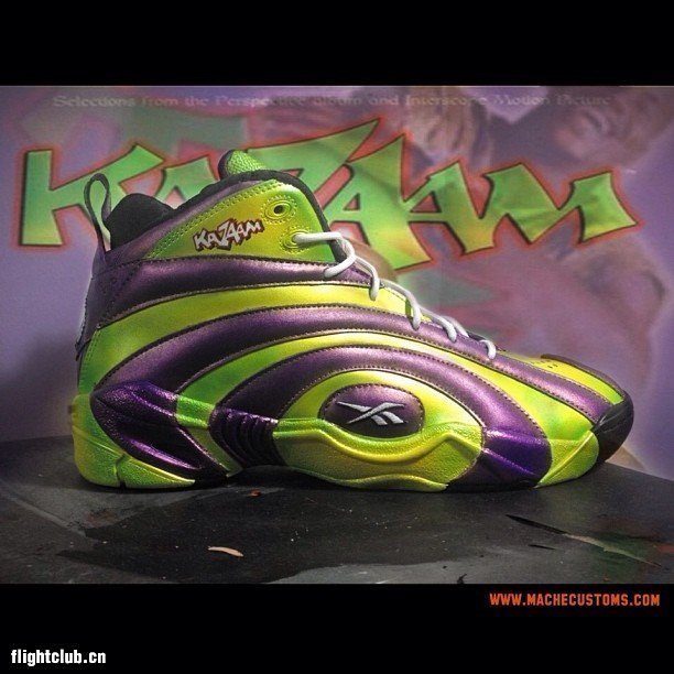 Mache 此次以奥尼尔1996年出演的经典喜剧电影《Kazaam 》(精灵也疯狂)为设计灵感,打造出这双Reebok Shaqnosis "Kazaam"定制。绚烂的鞋身颜色取自奥尼尔片中的装扮,而脚踝处也写有"Kazaam"字样。