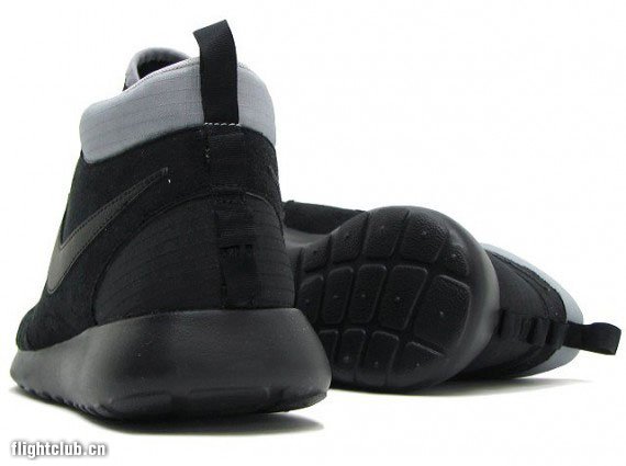 昨天为大家介绍了一款橄榄绿搭配橙色大底的 Nike Roshe Run SneakerBoot,今天小编则为大家带来一款相对低调很多的 Roshe Run SneakerBoot 新配色。鞋款以黑色的小山羊皮搭配夹层尼龙材质,大底也为黑色呈现,脚踝部的尼龙织物鞋领则以灰色打造,这款深沉内敛的配色对于秋冬季节的搭配来说相当得心应手。喜欢的朋友在未来可以关注一下。