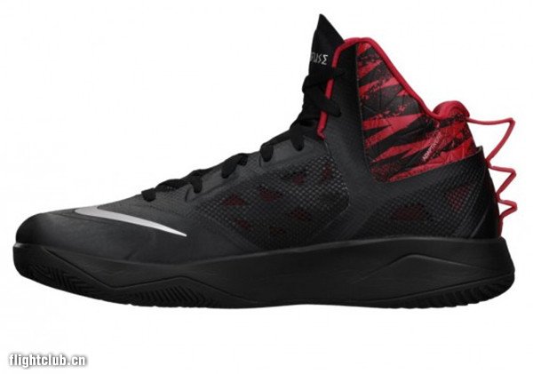 随着NBA开赛期的临近,赛季的的主打鞋款 Nike Hyperfuse 2013 也释出了越来越多配色。近期Nike上架了一款黑色、金属银和校园红配色的 Hyperfuse 2013,鞋帮处的红色折线设计像是迸发的火焰,非常富有激情,鞋身整体采用了菱形切割的设计风格,棱角锐利,速度感十足。这款战靴现已上架,售价110美金,货号615896-001。