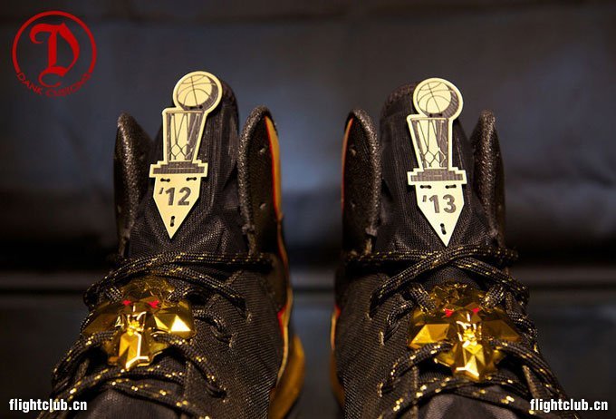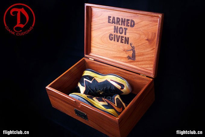 Dank Customs 为詹姆斯的第二次夺冠特别定制了一款高端大气的 LeBron X Elite "Championship",从球鞋细节到木质鞋盒,都体现着超豪华的荣誉感,而詹姆斯本人也对这双特别打造的专属定制球鞋表示了特别的喜爱之情。 今天在热火队的媒体日,詹姆斯就亲着这双专属定制战靴,接受了媒体的采访。