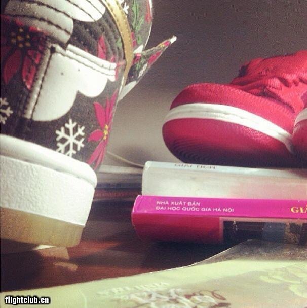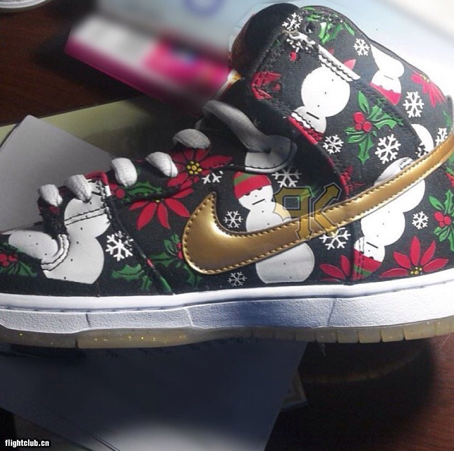 之前曾有曝光一双“圣诞毛衣”Nike SB Dunk High,鞋身以灰色作为底色辅以圣诞元素图案装点,近日网上则曝光另一双同主题的黑色版本,搭配金色漆皮swoosh以及附有金色纸片的水晶大底,暂时没有市售信息。