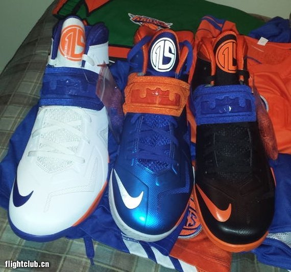 网上曝光三款Nike Zoom Soldier VII,分别以白、蓝以及黑作为鞋身主色调,均辅以橙色或蓝色点缀,均呈现纽约尼克斯的风格,而鞋舌logo则彰显着鞋款主人的身份,Amare Stoudemire。