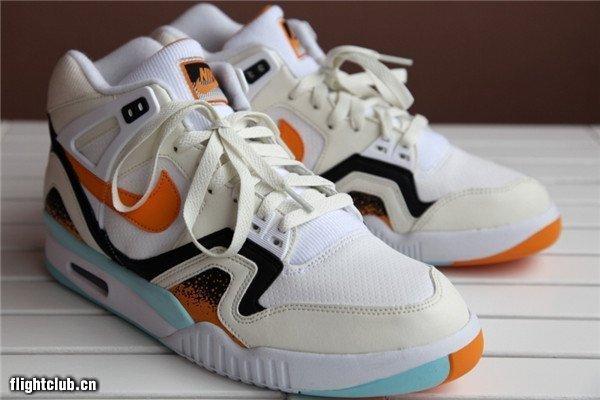 随着阿加西回归Nike,他的经典签名鞋 Nike Air Tech Challenge II 也随之复刻,而且超级火爆的 AirYeezy 2 使用了Air Tech Challenge II 的外底之后,它的经典地位就更进了一步。原本只有“温网”和“美网”两个传统的配色的 Air Tech Challenge II 明年将给我们带来更丰富的变化,比如眼前这双。干净的白色鞋面搭配黑色和橘色的细节充满了活力,淡薄荷色的外底似乎带有一股清香。据悉这款鞋将在2014年与我们见面,货号318408-180。