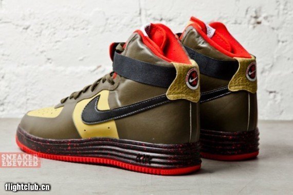 国王荣耀配色LeBron 11上使用的降落伞金也将延伸至其他鞋款,比如眼前这双Nike Lunar Force 1 High。鞋身以无缝合形态呈现,深/浅降落伞金色搭配红色以及黑色细节,暂时没有市售信息。