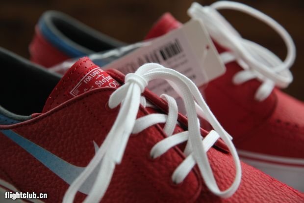 Nike SB Janoski无疑是今年最火的滑板鞋款之一,而Nike会将这劲头延续至2014年。一款将于明年发售的全新配色率先曝光样品,鞋身选用优质皮革制作,质感不俗,而鞋款亮点就在于效果如天空般的白蓝色渐变,从swoosh延伸至鞋领部分。