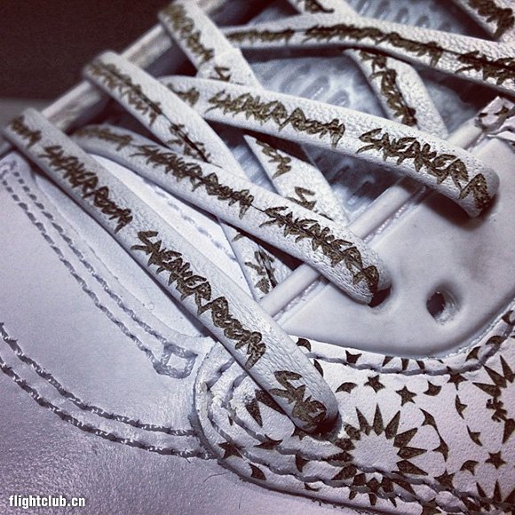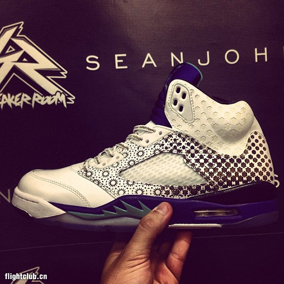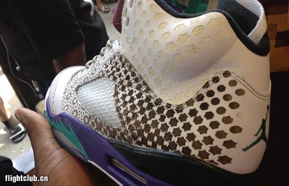 Sneaker Room在新泽西贝永开张第二家店铺,店铺主理人Suraj因此收到来自Absolute为其专门定做的镭射Air Jordan V,店铺元素出现在鞋带以及后跟内侧。收到这样一份1 of 1的礼物相信Suraj一定兴奋之极。