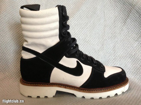 以Dunk为基础为女生打造的靴型鞋款早在2009年的Dunk Boot GS就已推出过,不过近日有卖家曝光一双名为Nike WMNS Dunk Daria的全新鞋型。同样以Dunk作为鞋面设计基础,同样是靴型鞋款,只是卖家并未拍出鞋标,暂时不清楚此鞋款是已取消发售的产品还是正在进行中的项目。